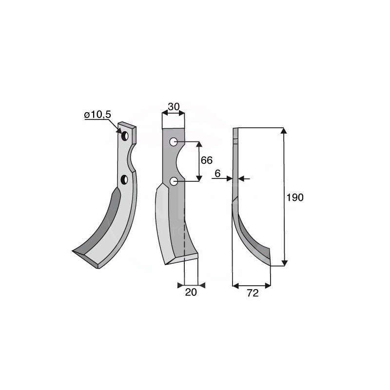 COUTEAU GAUCHE MOTOCULTEUR GRILLO 7085 - LONGUEUR 190 MM