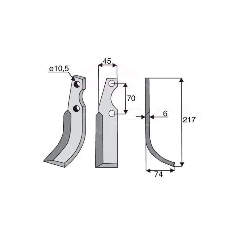 COUTEAU FRAISE MOTOCULTEUR SEP 217 MM - FIXATION 10.5 MM - ENTRAXE 70 MM