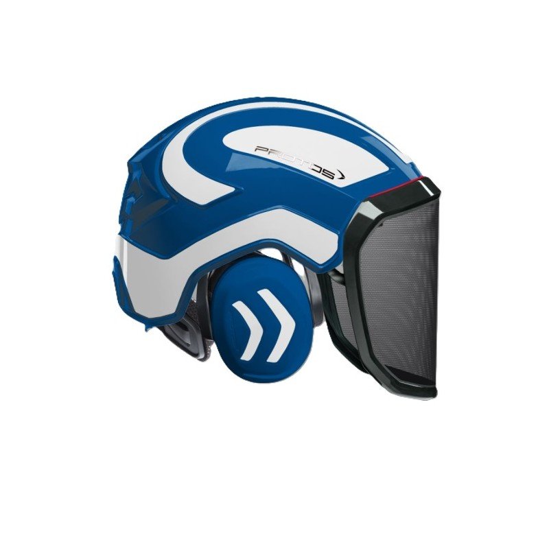 CASQUE DE PROTECTION INTEGRAL FORESTIER - TRONCONNAGE - ELAGAGE - DEBROUSSAILLAGE - VISIERE F39 - BLEU ET BLANC